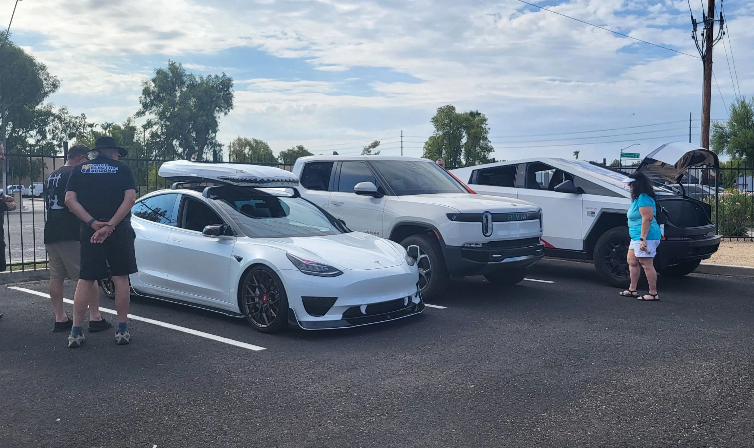 These types of community events (car shows, gatherings, etc) are great venues for us to show our EVs to the general public, and get the word out that normal, every day people enjoy their EVs and want to share their experiences. Sometimes, we get interactions with people that are negative about EVs (because of misinformation), or have never sat in one, so this offers a great way to connect with our community and directly dispel myths about EVs.