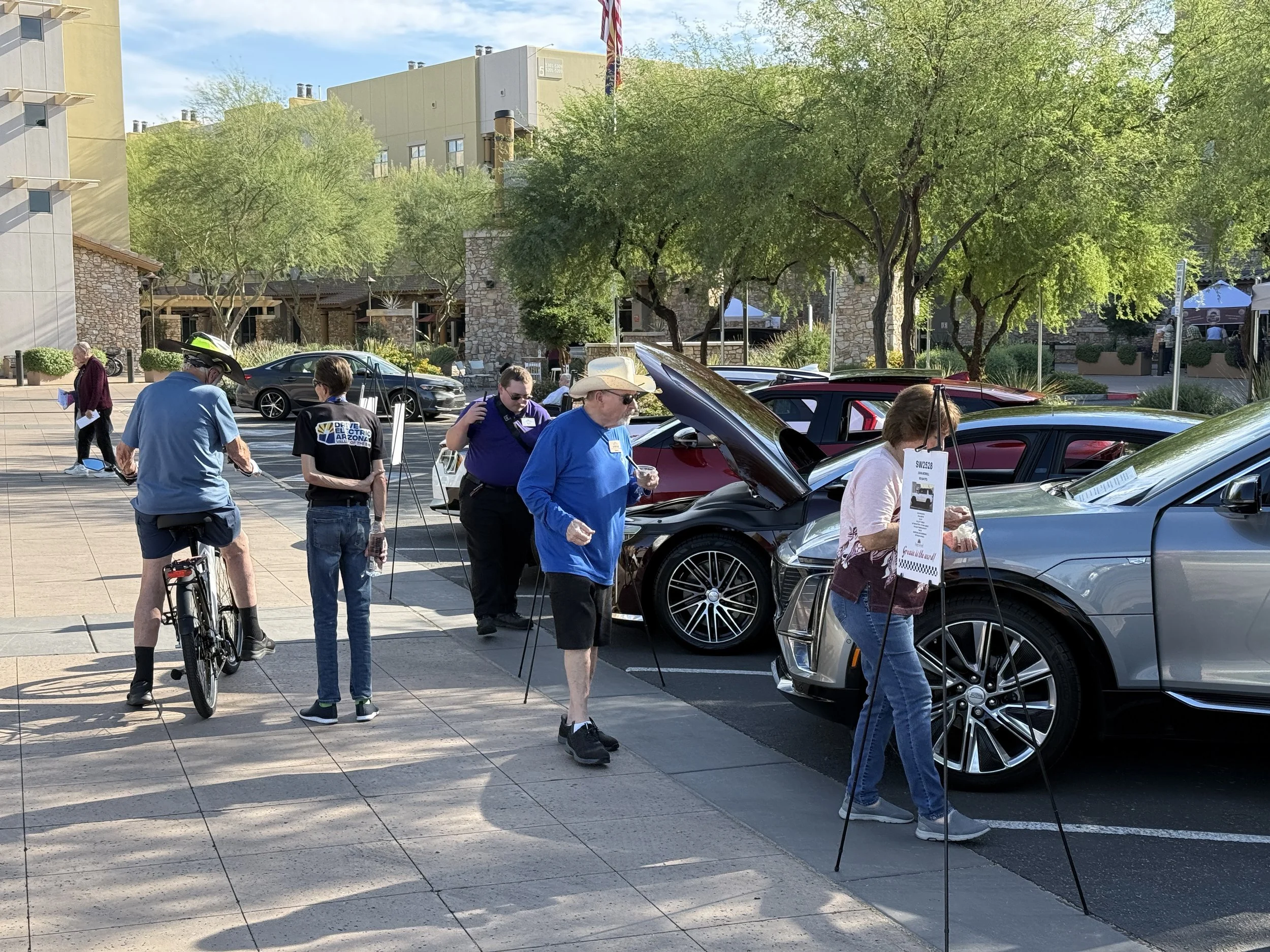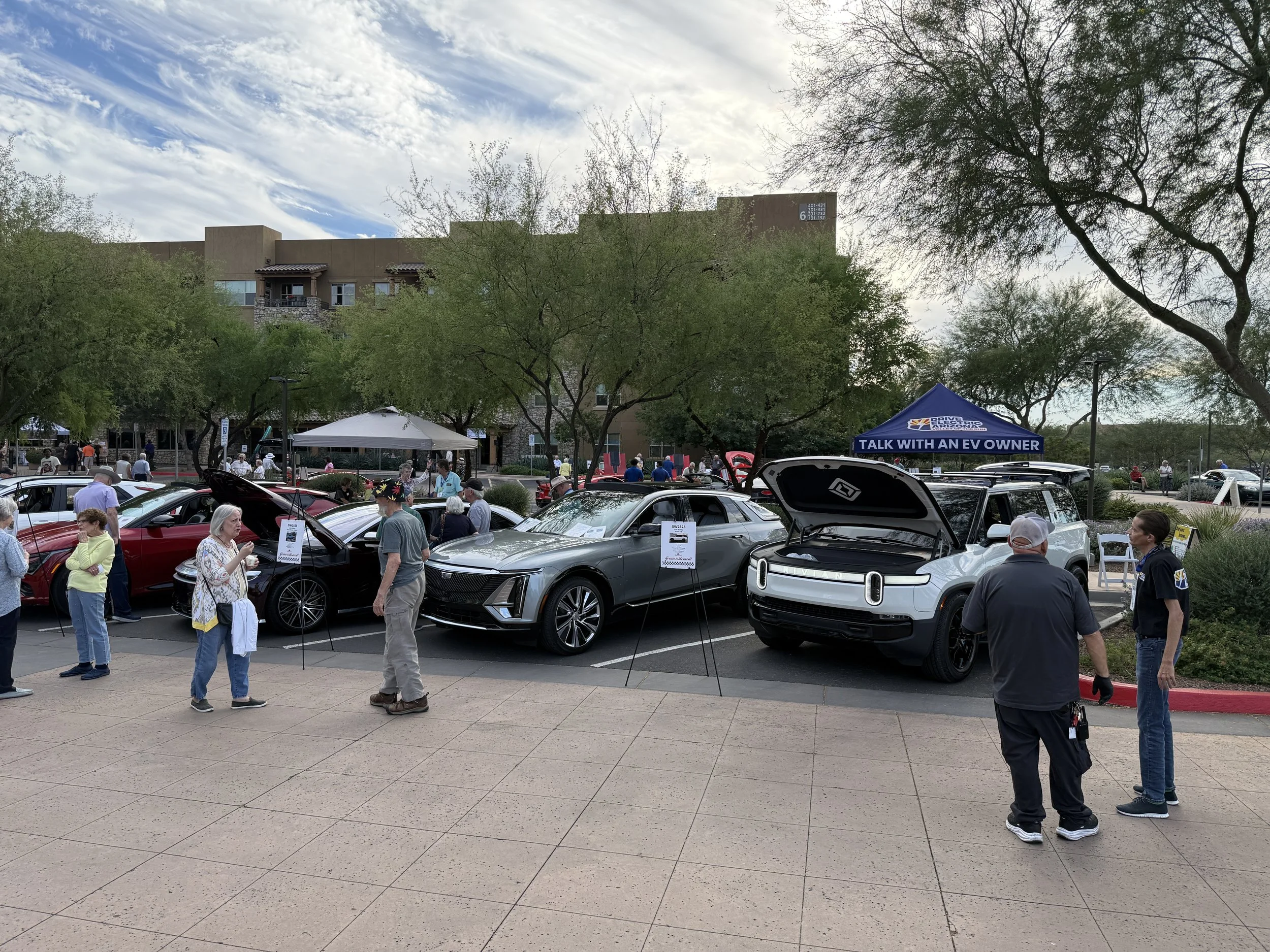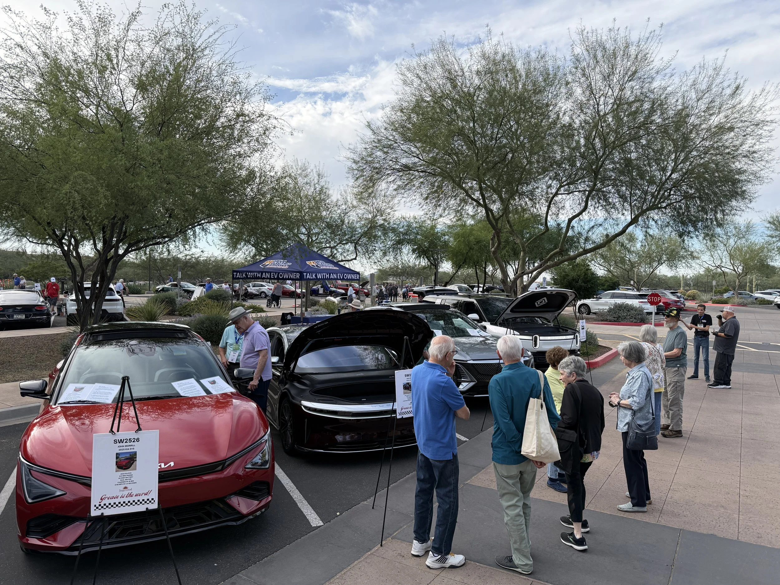 DRIVE Electric Arizona was proud to participate in the Sagewood Senior Living Community car show in North Phoenix, where five electric vehicles were featured as part of a special EV showcase. Residents had the opportunity to explore a diverse lineup, including a Kia Niro EV, Kia EV6, Lucid Air, Cadillac Lyriq, and Rivian R1S.